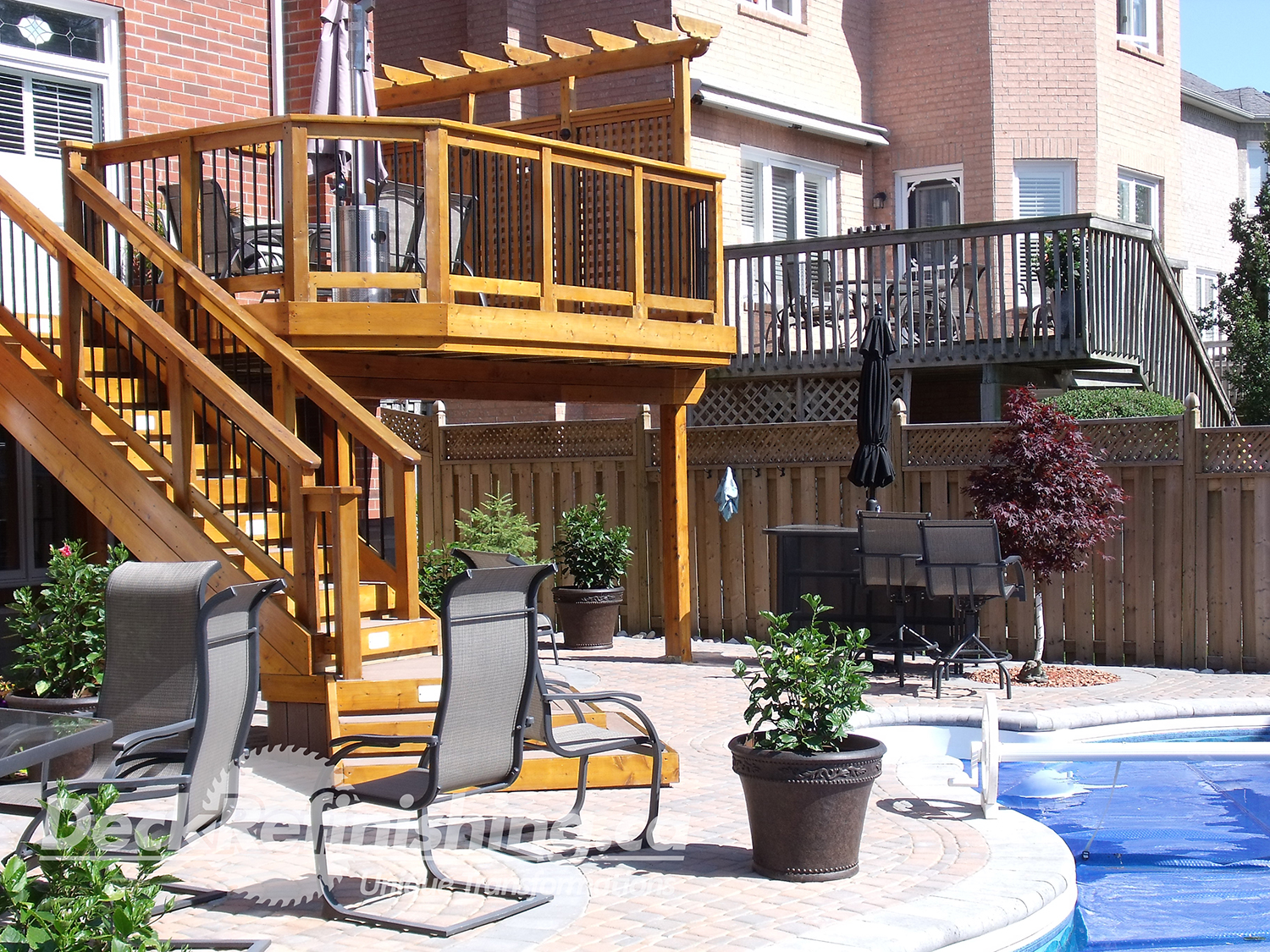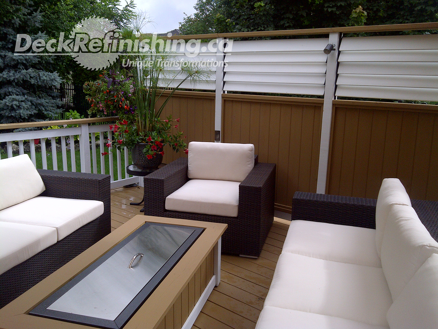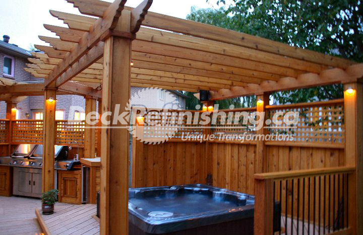 Deck Refinishing provides quality design and new construction at any scale. Beautiful features, such as BBQ Areas, Kitchenettes, Privacy Walls, Hot tubs, Cabanas, Artistic Garden Structures, Fire and Water features and more. From decks to elaborate Living Spaces; we will bring your vision to life and exceed your expectations. Through networking and strategic alliances we are slowly and cautiously adding to our product and service offerings. We have achieved an impressive list of partners in areas such as masonry, gas fitting, pool installation & maintenance, landscape design, construction and maintenance.