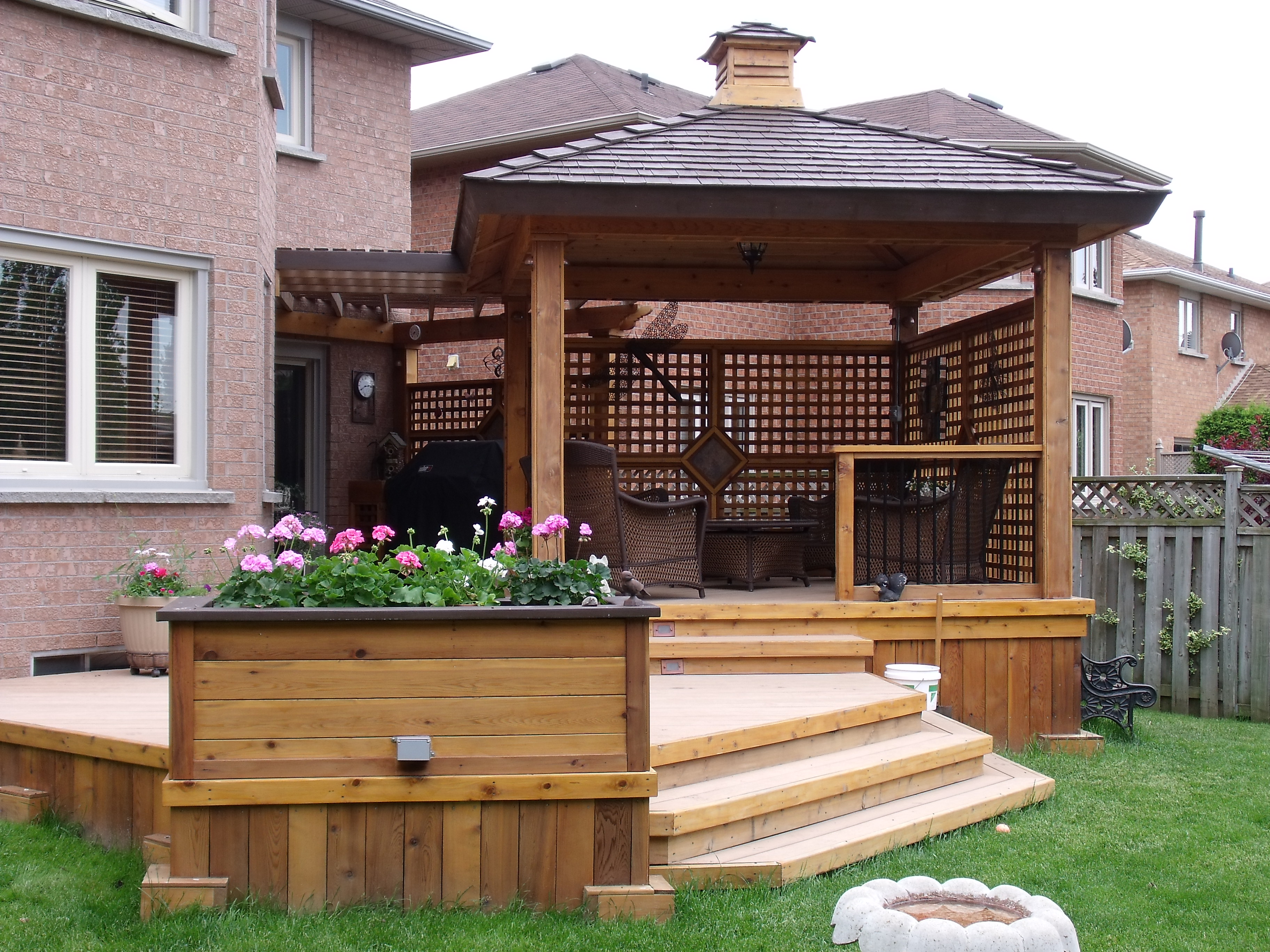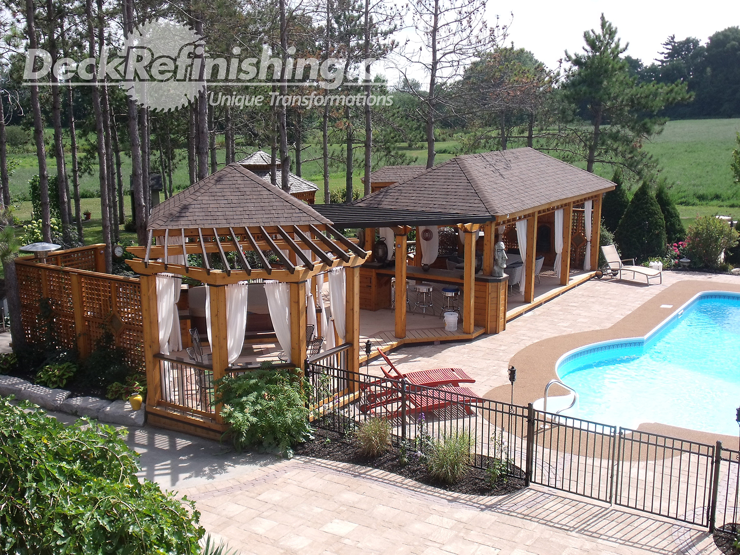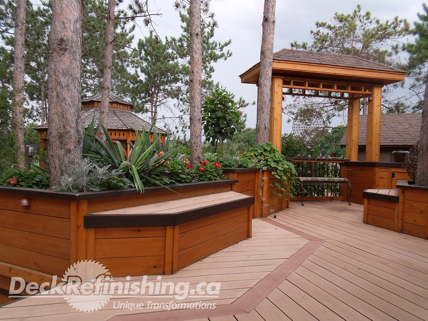 Deck Refinishing provides quality design and new construction at any scale. Beautiful features, such as BBQ Areas, Kitchenettes, Privacy Walls, Hot tubs, Cabanas, Artistic Garden Structures, Fire and Water features and more. From decks to elaborate Living Spaces; we will bring your vision to life and exceed your expectations. Through networking and strategic alliances we are slowly and cautiously adding to our product and service offerings. We have achieved an impressive list of partners in areas such as masonry, gas fitting, pool installation & maintenance, landscape design, construction and maintenance.